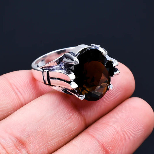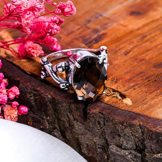 Smokey Quartz Gemstone Cut Stone Handcrafted Statement Ring