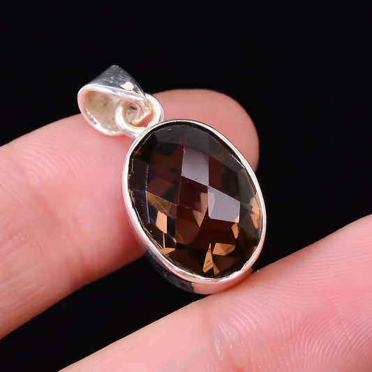 Smokey Quartz Gemstone 925 Sterling Silver Pendant