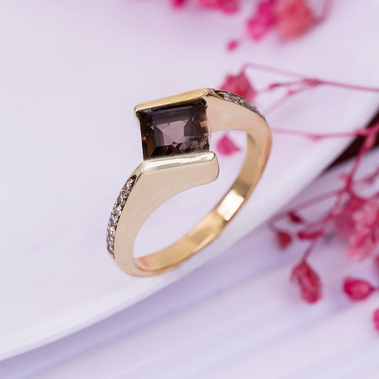 Smokey Quartz Gemstone Cut Stone Statement Ring