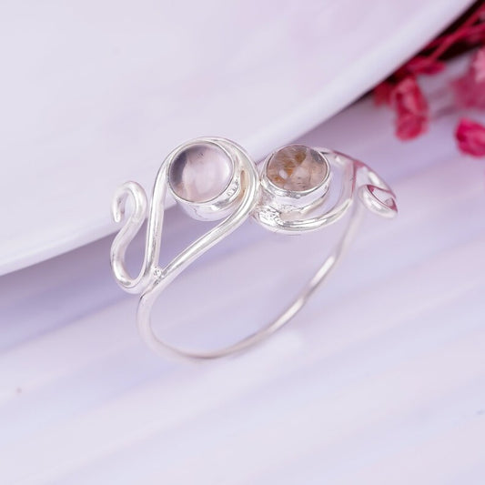 Green Onyx And Smokey Quartz Handcrafted Birthstone Ring