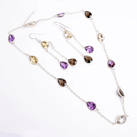 Multi Gemstone Amethyst, Citrine, Smokey Quartz Jewelry Set